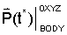 Consider a BODY that moves in 0XYZ - space. At a time, no time specifically but an initial time (notated as t = t*), an implicit mathematical statement of the body position in XYZ-space is P(t*), written below left (1).