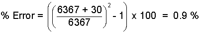 This result makes sense, it says the error increases with altitude. Using some numbers, the Earth radius is about 6367 km, so the error for use of the constant at an altitude of 30 kilometers is approximately: