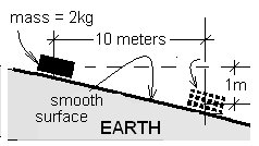 He measured time versus distance of travel to calculate Earth's gravity, go. Suppose on one test (geometry as shown) Galileo used powder on the ramp and a small cube of steel. The time of the slide he measured at 2.4 seconds. Assume the cube to slide down the plane without friction.