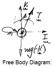 The "free-body-diagram" provides a vector basis for writing Newton's 2nd Law for the mass. The forces are the tension of the cord and the force of gravity.