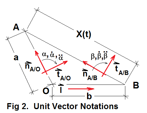 Figure 2 shows the unit vectors needed along with "assumed positive" directions of angle, angular velocities, and such.