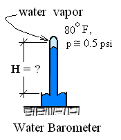 A sketch is shown being the configuration of a barometer but the fluid is water not mercury. The "pressure of the void" for water is the vapor pressure of water at 80°F. This pressure is about 0.5 psi. Use the schematic.