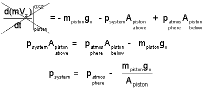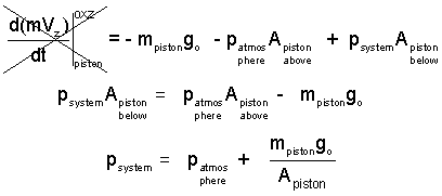 The sketch (right) shows two alignments of the Classical Piston/Cylinder. In either alignment, the system pressure (fluid within) is obtained by application of the momentum equation to the piston.
