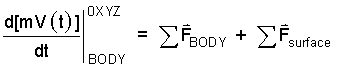 The instantaneous rate of change of momentum of a BODY in time equals the gravity force plus the sum of all surfaces forces acting. |