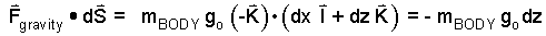 The first term right of equality is the vector product of the ever-present gravity force times the arbitrary displacement. This scalar multiplication yields: