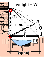 ♦ Our system is the simple span of a drawbridge. To "select the bridge as system," is to isolate it (mentally). To do this, let your mind's eye trace the entirety of boundary of bridge. The event for the bridge will be that the "drawing ropes" pull it from a horizontal to vertical position.