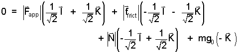 Vector algebra is required. One procedure would be to collect all of the terms having the unit direction, I and the others having the unit direction, K. The vector with these components equals zero, so the magnitudes of the components themselves must equal zero.