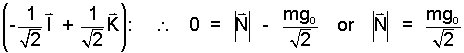 A second solution path is to multiply the equation by a unit vector perpendicular to the plane, and then multiply it by a vector parallel to the plane. The "perpendicular to slope" unit vector and the result of its multiplication of the above equation are: