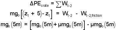 The result above shows work of the applied force identified as two components. The applied force did work to elevate the crate and also to overcome friction.