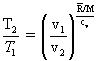 By the rules of natural logarithms, the expression above right can be cast as a process path for the frictionless adiabatic expansion (or compression of a gas). Our immediate result has T and v as variables. Substitutions using the gas equation with a workout in dealing with exponents yield an equation form with T and p and another with p and v as variables. These are included here for completeness.
