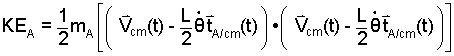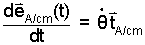 In our sketch (above right) the assumption of rotation direction is not shown. Let it be "positive clockwise" with a magnitude, θ(t). Then the derivative, deA/cm(t)/dt equals tA/cm(t) θ-dot(t).