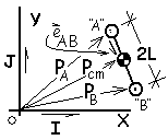Our next model, a step more complex than the BODY, will consist of two identical masses of atomic size. We assume the masses locked side-by-side with a rigid, constant distance between them. It is usual to call these BODIES, PARTICLES and to call their configuration a RIGID BODY.