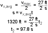 If acceleration is constant then velocity increases linearly from zero to 27 feet per second. Therefore the average velocity would be one half the final velocity and the distance traveled would equal the average velocity times the time.