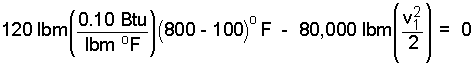From physics, change of internal energy equals mass times specific heat times temperature difference and change of kinetic energy equals one half the mass times the difference, of (speed - squared).