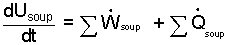 The subscript "soup" identifies the system. Summation signs, Σ are use with "work" and "heat" as a reminder to look for all instances of either. |