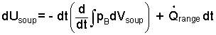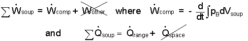 The "work" and "heat" of Eqn-1 are written preceded by "summation sign" to remind us to address terms carefully. All substances are at least "simple compressible." "Other work" for the soup does not apply. Compression work (rate-form) is written as below-right.