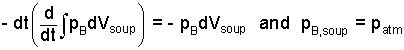 By definitions of calculus, the compression work term reduces to be the boundary pressure times differential volume. Also the boundary pressure of the soup equals the ambient pressure of the air.
