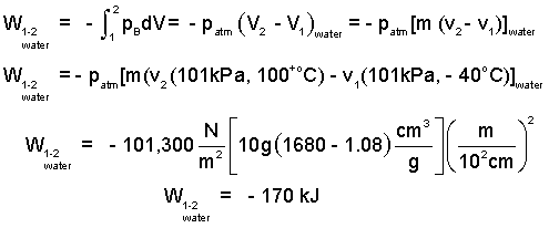 Calculate the compression work of the ten grams of water?