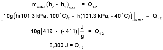 ♦ The event of water occurs at the constant pressure, one atmosphere. There will be a kinetic energy change; we assume it is negligible. By the energy equation