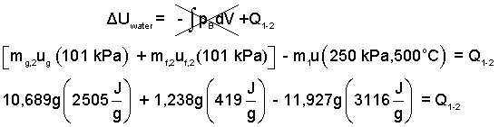 Calculate the amount of liquid when the port pops open. In the second state, the original mass will be part liquid with the specific volume of state (2f), and part vapor with the specific volume, of
