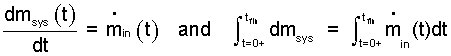 The resulting "reduced" mass equation is shown below left. To proceed to solution the variables of this first order differential equation are separated then the equation is integrated in time between initiation and completion of the event. That is between, t = 0+ and t = tfin. Shown below right.