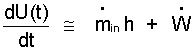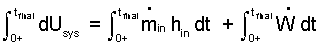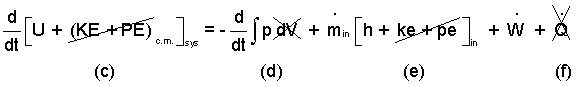 The change kinetic and potential energies of the system are assumed small - (c). The kinetic and potential energies of the entering mass are also assumed negligibly small - (e). The "system expansion work" is zero (d) because the system volume is constant. Finally heat is assumed zero because of the expected short time of the event - (f)