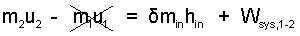 Mass Equation: The mass equation is written with two reductions for the "system/event" indicated. The system has only one place of mass entrance (a) and no places of mass exit (b).