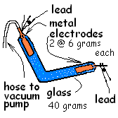 One fitting has a built-in tube by which the tube is evacuated then filled with colored neon light needed downtown. A last step, prior to filling the bulb with gas and sealing, is to heat treatment the assembly to burn out impurities and water and to stress-relieve the glass welds. Burn-out is accomplished by passing direct current electricity at very high voltage (but low current) into the lead at one end of the tube through the glass and out the other.