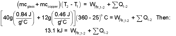 Observe the last equation (above) of our solution. We see the amount of electrical resistance power, I2R, cannot be calculated because we do not know the sum of the heats. To calculate the sum of heats requires knowing temperature differences of the glass and copper in time, the surface area of the glass and some other experimental numbers. Those are topics of heat transfer. Since the glass and copper get hot, there will be heat and it will be (negative) to the surroundings. Consequently our answer based upon the assumption of no heat will be smaller than actual whereupon the actual electrical power must be:
