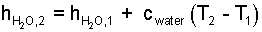 We must now express the enthalpy differences quantitatively. Since we know more about water than carbon dioxide, we apply the solid principle "easier things first." The meat, approximated to be water, enters the grinder modeled as a liquid and leaves colder but still liquid at 1°C. The second, or exiting enthalpy is greater than the first.