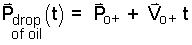 Now we choose to look at this delivery of oil as an event of "Uniform Motion." The system of our event will be the drop of "drop" we discussed above. Since we will deal with vectors, we fix an imaginary origin to the pipe at the location of the velocity gage. The actual pipe is not straight, but our answer will be correct. The initial and final position vectors of the drop are: