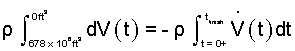 Next we apply integration operators. The lower limits (both integrals) are associated with the initial state of the canal and the initial time of digging. By the calculation below we know the initial volume of sand the is 678 million cubic feet; this is the lower limit of the left-of-equality integral and the lower limit of the integral right-of-equality is the time, t = 0+.