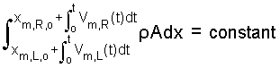 Specification of material coordinates as boundaries (left/right moving) with fluid particles, assures us that the bounded mass, the material mass is constant: