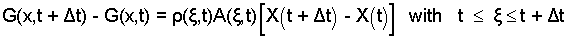 Next we divide by Δt and let Δt → 0. Left of equality we get dG(x,t)/dt immediately. We will explain the steps for "right of equality."