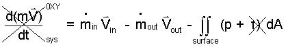 Momentum equation: The system is steady with a single entrance and a single exit. We are concerned with 0XY space so the gravity force does not apply. The momentum equation is: