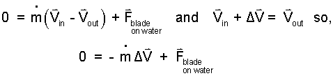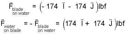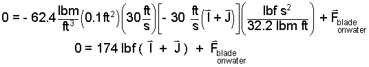 Force of Water on Blade: A common next step is to determine the force of the jet of water on the blade. Our system analysis provided the force of the blade on the water, therefore the negative of this force equals the force of the water on the blade.