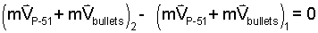 (3) System mass remains constant as bullets speed ahead of the P-51. |
