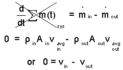 Typically, when doing an energy analysis, one starts with the energy equation. The mass equation is needed also but, being easier, it is often used secondly. There is a single stream of flow with constant density and constant flow area.