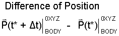 (2)This the new (implicitly stated) position of the same BODY a short time later (at the time, t* + Δt) in the space described by coordinates, 0XYZ. |