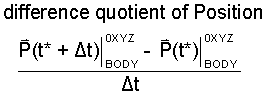 Consider a BODY that moves in 0XYZ - space. At a time, no time specifically but an initial time (notated as t = t*), an implicit mathematical statement of the body position in XYZ-space is P(t*), written below left (1).