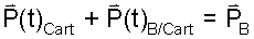 The above equation is written in an "implicit" (or inspecific) form. To proceed we make the equation explicit. Of the three terms, the position of point "B," is easiest to write. It is known PB is known. The first, leftmost, term represents the position of the cart as a function of time, P(t)cart. licit" do the easy parts first.