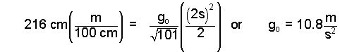 For one test (geometry as shown) he used a small, highly-polished cube of steel. He observed the cube to slide down the incline a distance of 216 centimeters in 2 seconds. What value of g0,E did Galileo's determine?