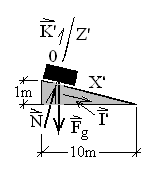 This will be a special coordinate system (0'X'Z') with the X'-axis parallel with the plane (and increasing "up the plane"). The unit vectors are then I' and K'. The free-body diagram shows this information. The momentum equation and its forces are written below: