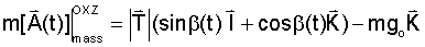 Next we write the acceleration in component form, remove "time-dependence" from the angle, β then scalar multiply the(3) by the unit vectors I, then K. Two scalar equations result to be solved: