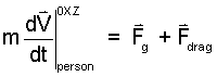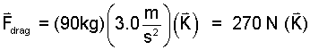 A system sketch should have been drawn with the person modeled as a BODY and the forces acting. Acceleration and forces are vectors; coordinates and a vector basis are required to state them. The sketch ( not done) would show the coordinates 0XZ with unit vectors I - J - K (with K upward or in the positive Z direction). The acceleration and gravity force are in the negative K direction. In the vector equation below, the drag force, its magnitude and direction, are the unknowns.