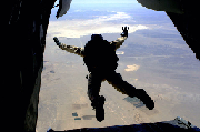 Note: A short moment after the parachutist jumps (@ t = 0+) horizontal speed will be that of the aircraft, his vertical spped will be zero and his acceleration will be Earthward at 9.8m/s², the velocity downward is zero and so also is the resistance of surrounding air. Speed of fall through air increases, hence air resistance to that motion increases. Ultimately the speed of fall becomes "all the surrounding air" will permit... terminal velocity is attained.