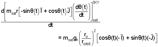 Next multiply Eqn-2 by the satellite mass. Place the factor, dθ(t)/dt to the right. Eqn-3 is the satellite momentum.
