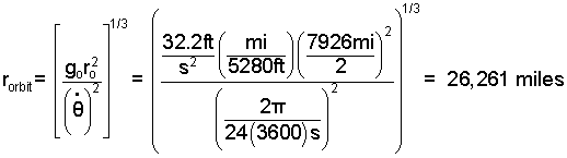 Our answer, 26,261 miles is referenced to the Earth Center. Accounting for the diameter of Earth, changes the above answer to 22,298 miles (above Earth surface).