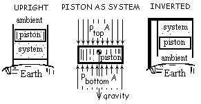 The sketch (right) shows two alignments of the Classical Piston/Cylinder. In either alignment, the system pressure (fluid within) is obtained by application of the momentum equation to the piston.