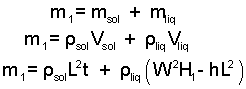 The densities, ρsol and ρliq are known constants and the dimensions, W, L and t are arbitrary. Thus the above equation appears to have three unknowns which are the initial (average) floating depth of the ice slab, h, and the initial and final depths of the sea, H1 and H2. However, we can group the two depth-unknowns together as: H2 - H1.